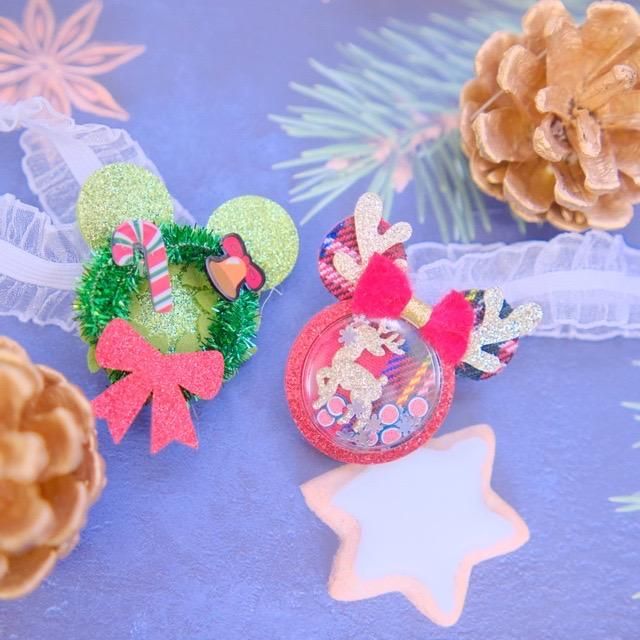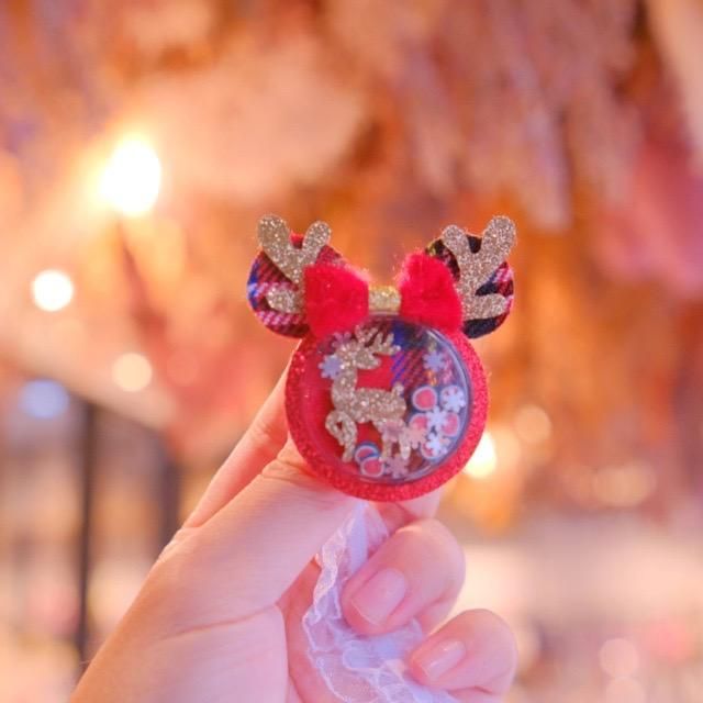 ミニーはトナカイの角がついて、中にはシャカシャカの飾りが入っています